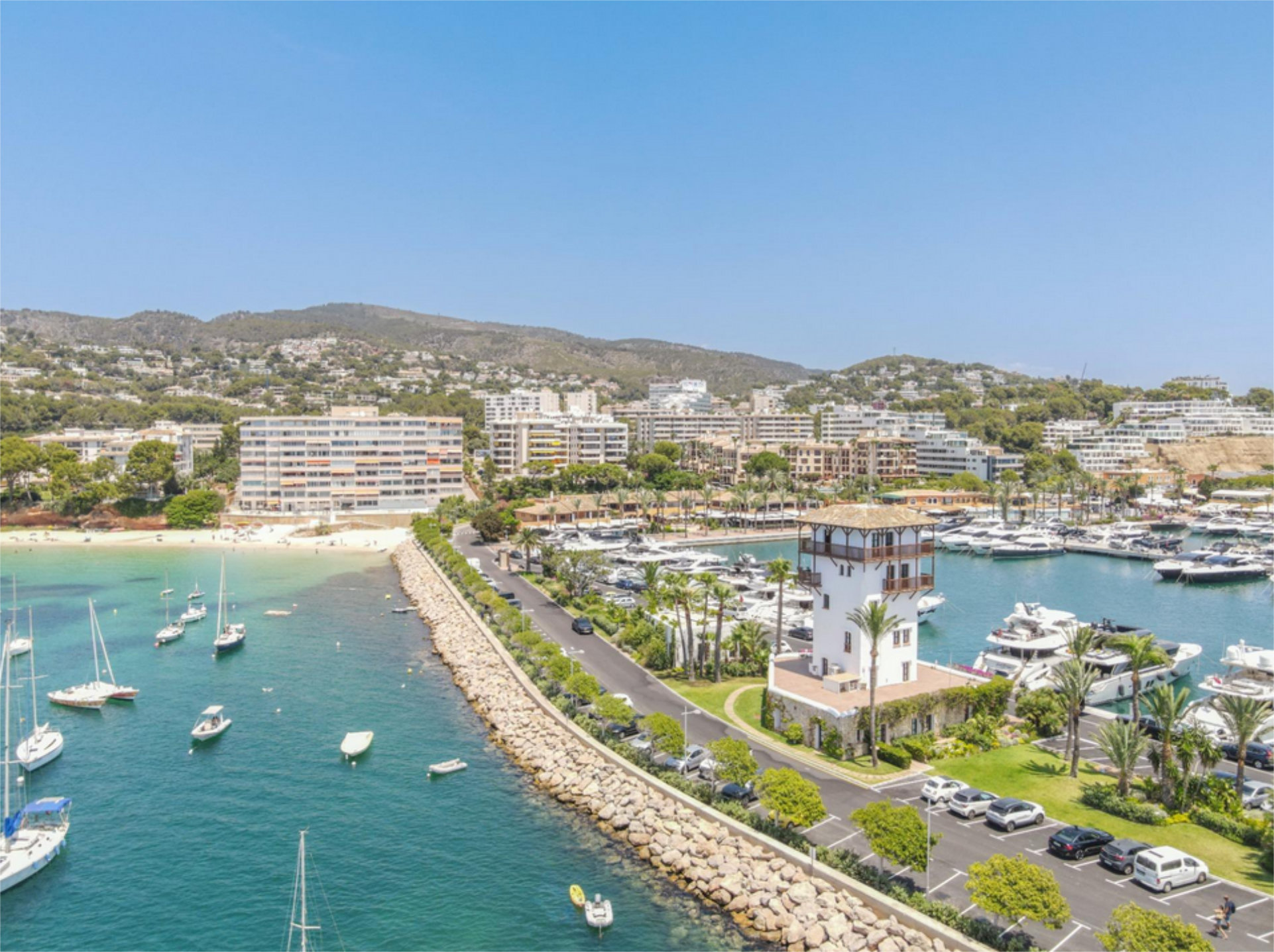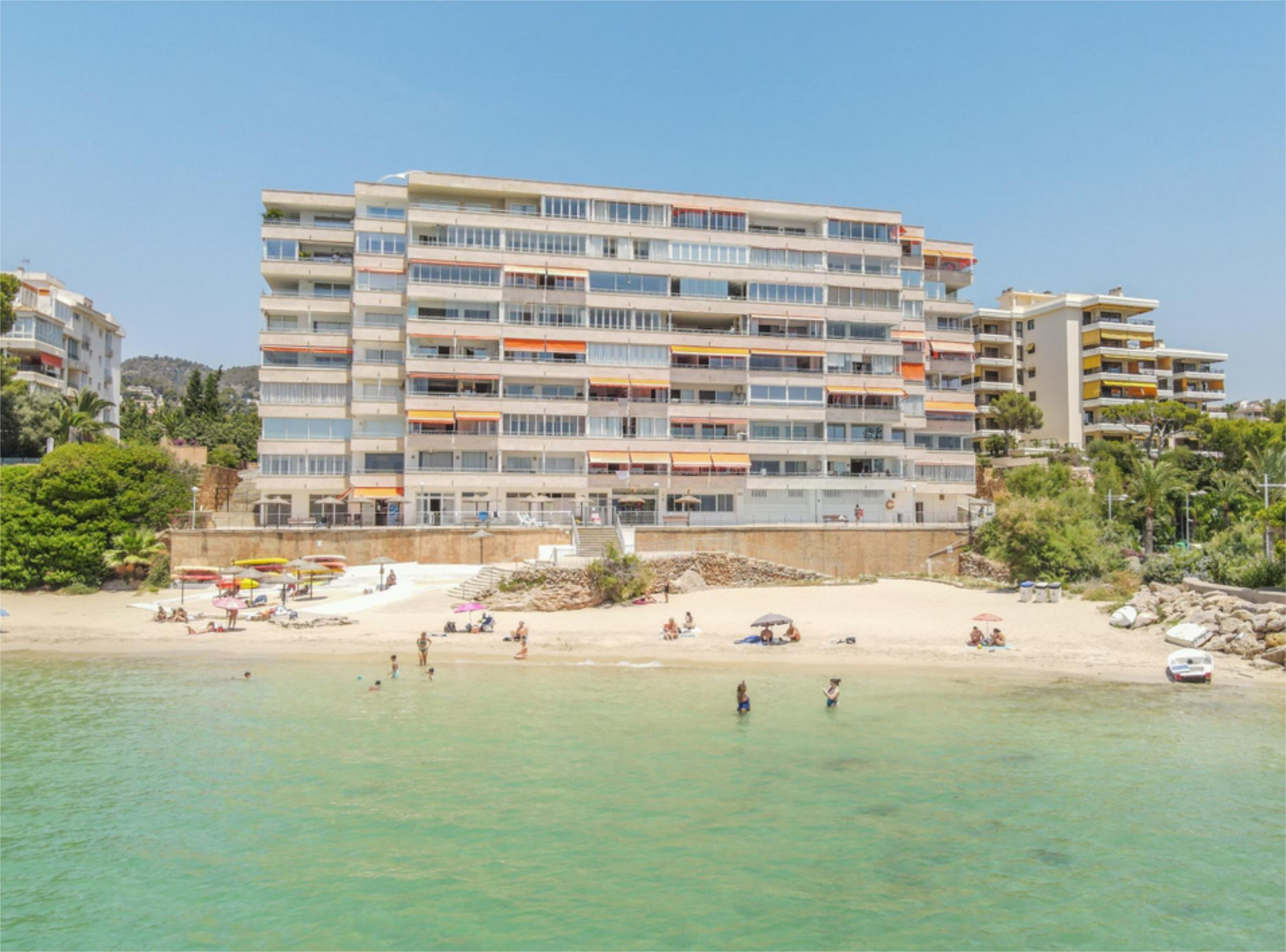 Dieses Meerblick-Apartment befindet sich in direkter 1. Meereslinie und direkt am feinen Sandstrand in Portals Nous.